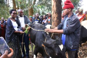 “These cows are not to be repaid, but are a means to build a better life. Based on our previous discussions in preparation for this event, we noted that during the genocide, families had more than one cow. Giving them a productive cow today is a way to accelerate their development. We ask them to take good care of these cows, feed them, give them water, and keep them in proper shelters. We ensured beforehand that they had appropriate shelters. We trust that these cows will be helpful, providing milk and improving lives, just as the beneficiaries themselves have said,” Says Mukandayisenga